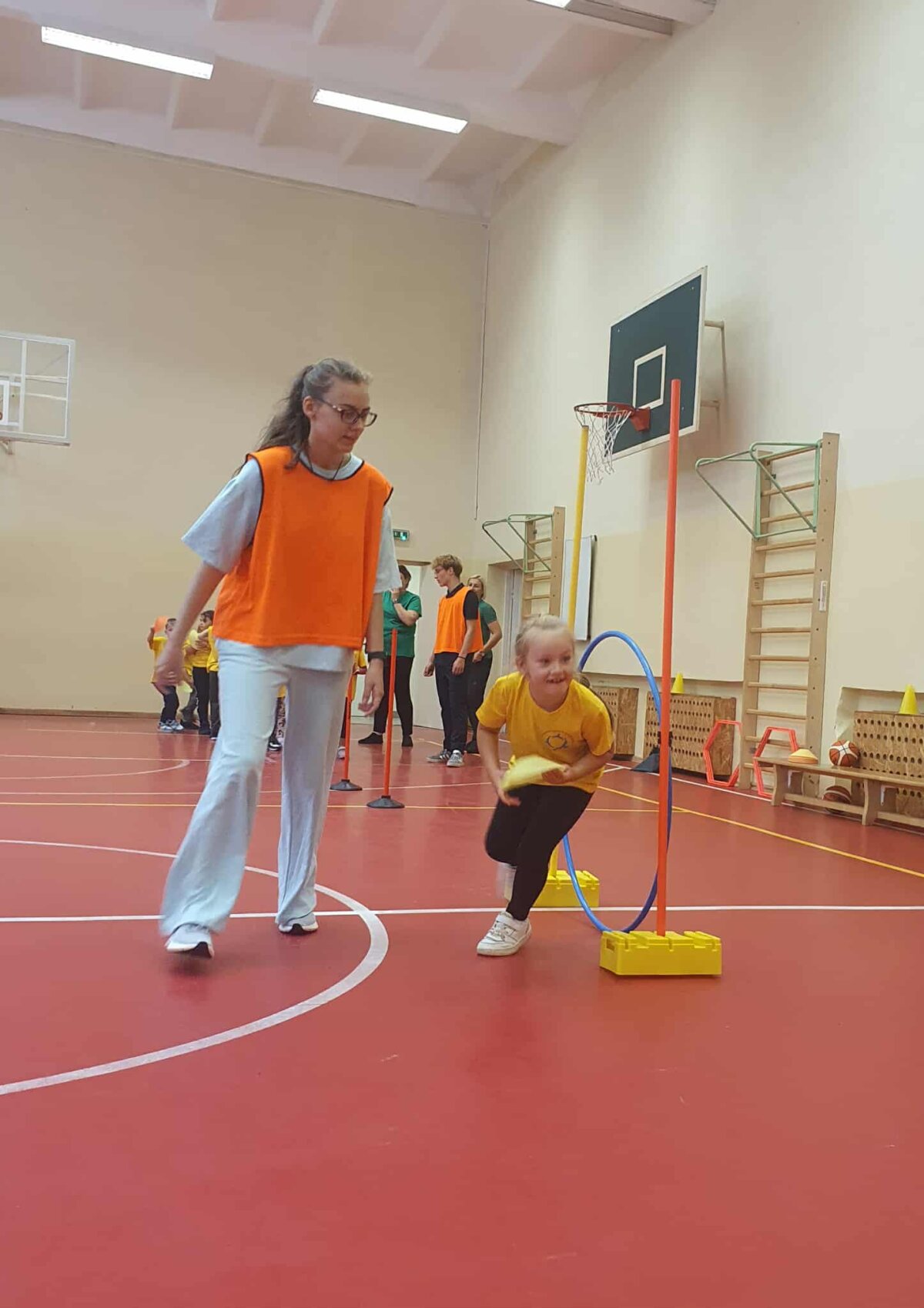 skambėjo juokas, tryško azartas ir spinduliavo gera nuotaika – čia vyko tradicinis renginys „Sportas mus vienija“. Jau ne vienerius metus trunkantis bendradarbiavimas tarp gimnazijos ir Josvainių socialinio ugdymo centro vaikų darželio suteikia mažiesiems galimybę patirti sporto džiaugsmą. Nuotaikingas sportines veiklas vedė fizinio ugdymo mokytoja G. Jurgelevičienė kartu su mokiniais padėjėjais. Mažieji sportininkai aktyviai dalyvavo estafetėse, žaidimuose, o renginio pabaigoje džiaugėsi draugyste ir smagiai praleistu laiku.