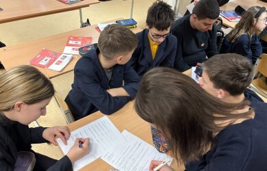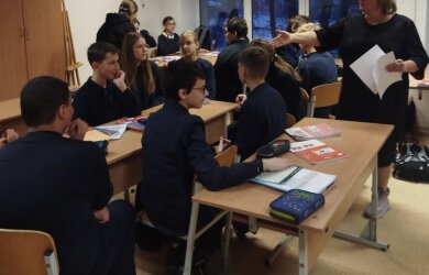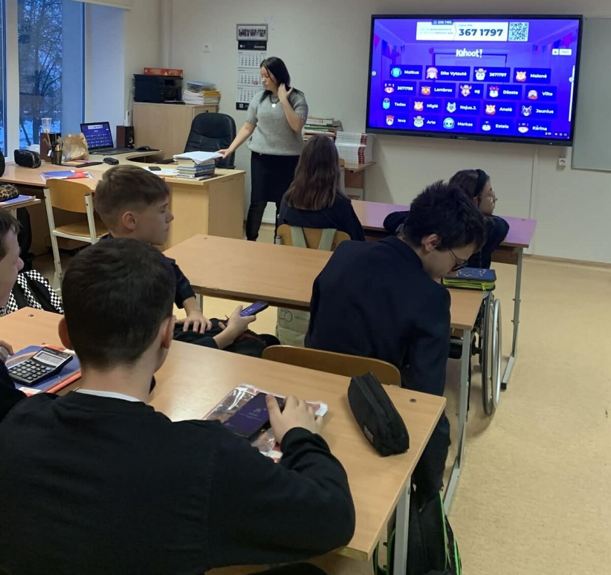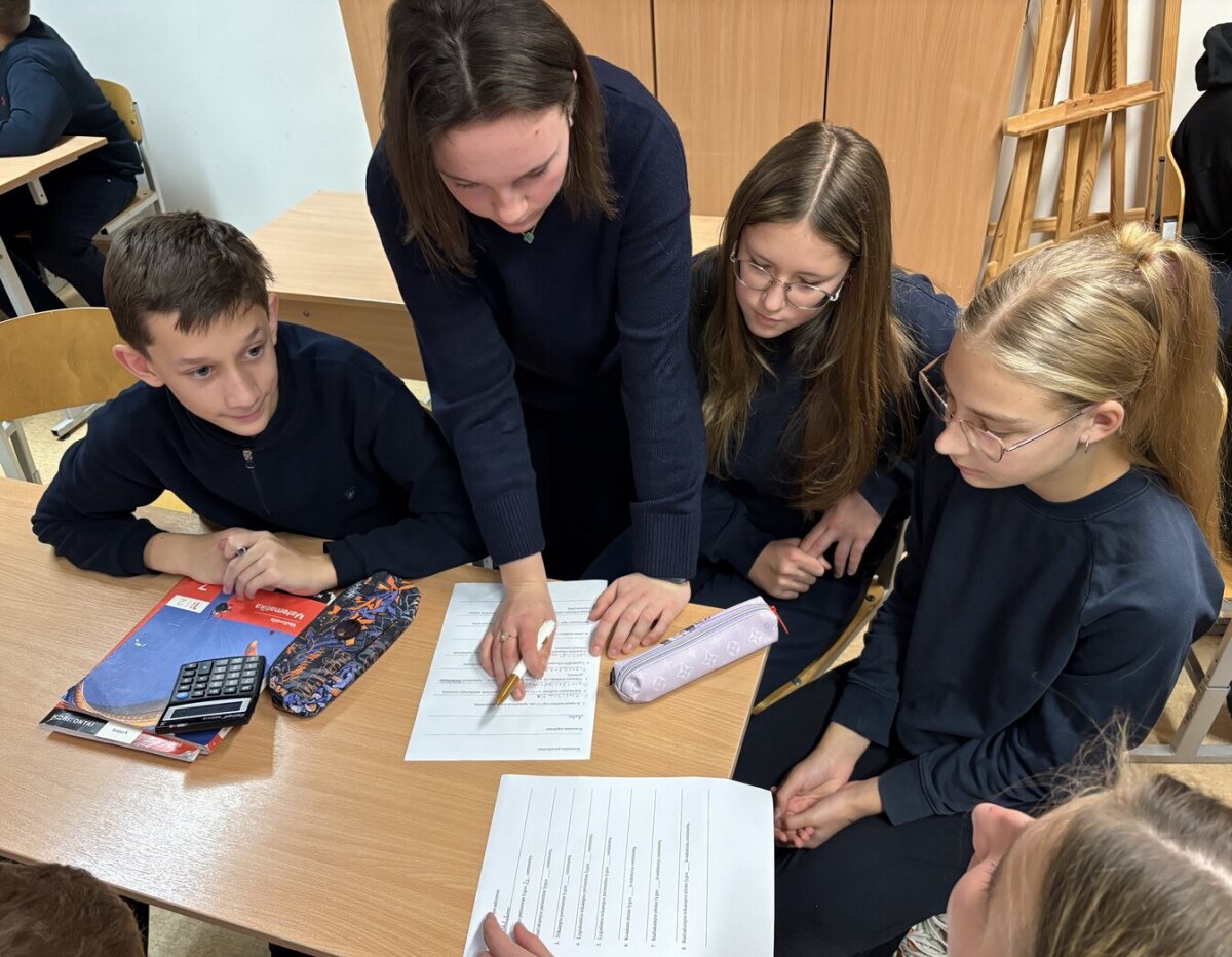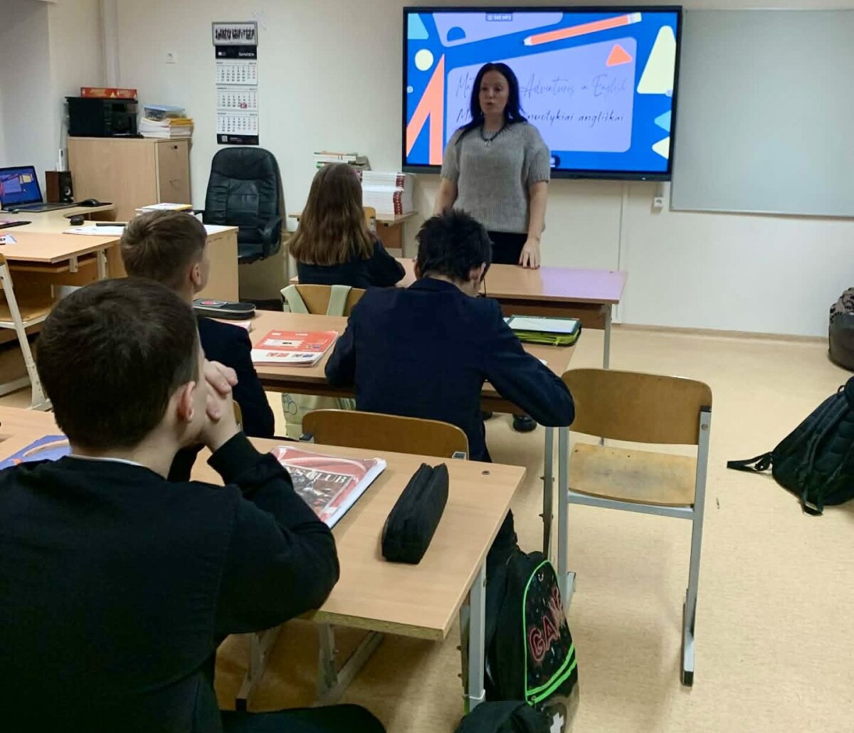 „Mathematical Adventures in English“/„Matematiniai nuotykiai angliškai“, kurią vedė mokytojos Jolanta ir Sniežana. Pamokos tikslas buvo pakartoti pagrindines geometrines figūras ir jų savybes, taikant matematinę bei anglų kalbos leksiką praktinėse užduotyse. Mokiniai vartojo anglų kalba figūrų pavadinimus, sakinius apibūdinant jų kraštines, kampus ir matmenis, taip pat sprendė uždavinius, susijusius su perimetro ir ploto skaičiavimu. Jie atpažino skirtingas geometrines figūras, apskaičiavo jų dydžius ir taikė žinias realiose situacijose. Integruotai dirbdami grupėse, mokiniai anglų kalba aptarė užduotis ir pristatė rezultatus. Pamokos pabaigoje mokiniai atliko interaktyvią įsivertinimo užduotį, padėjusią įtvirtinti įgytas žinias.