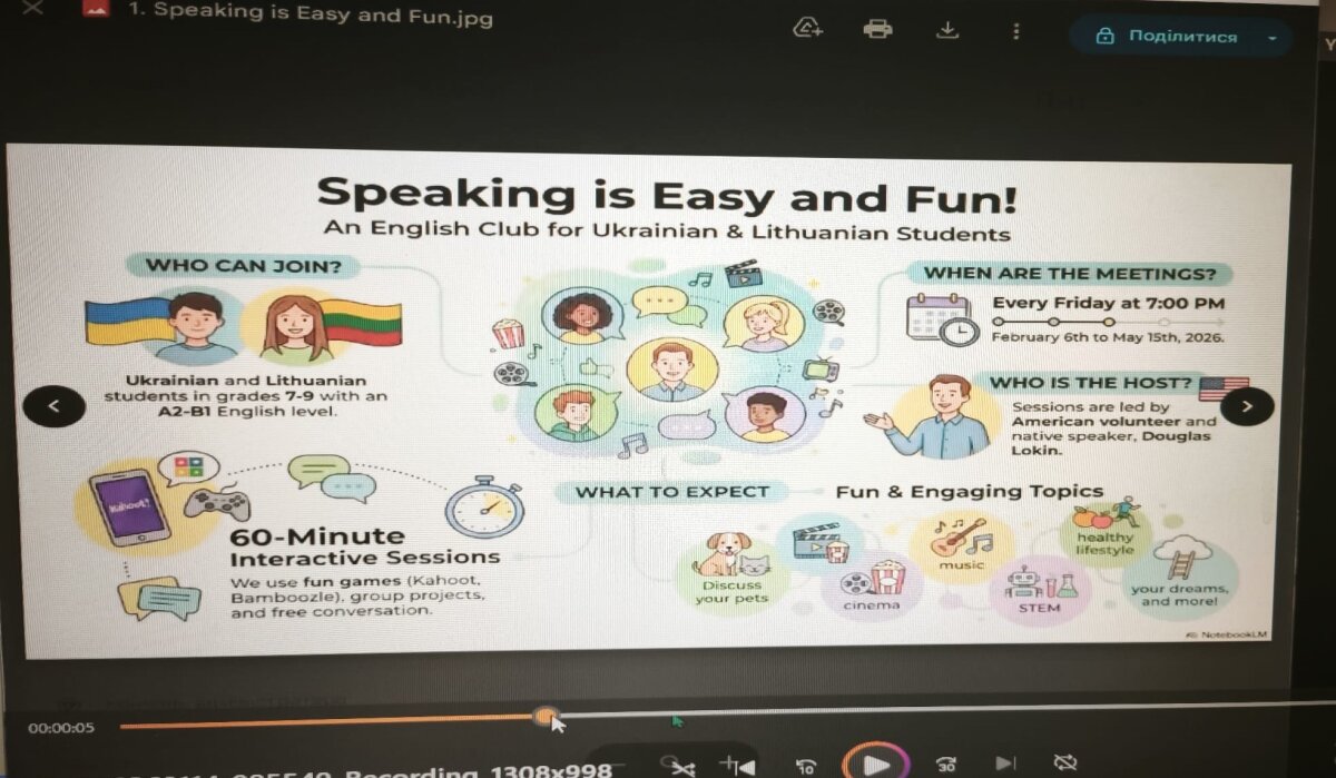 pirmasis nuotolinis susitikimas, atvėręs kelią abiejų įstaigų bendroms projektinėms veikloms. Ukrainiečių pedagogai pirmieji pasiūlė kelis projektus, kurie, tikimasi, padės šalims ne tik užmegzti pažintį, bet ir greitai sukurti šiltą draugišką ryšį.