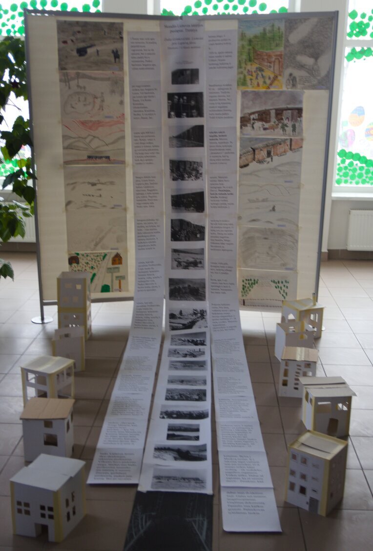 Per lietuvių literatūros pamokas 1G klasės mokiniai skaitė D. Grinkevičiūtės knygą „Lietuviai prie Laptevų jūros“, aptarinėjo skaudžius autorės atsiminimus iš tremties ir rašė savo įspūdžius. O dailės pamokose, remdamiesi aprašytais įspūdžiais, nuotraukomis, kūrė sukrečiančius meninius vaizdus, atspindinčius karo ir tremties siaubą.