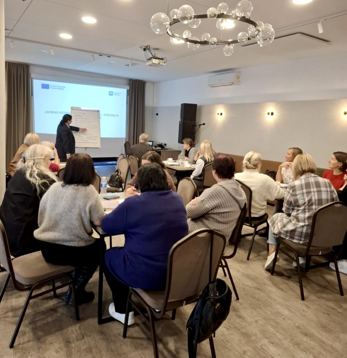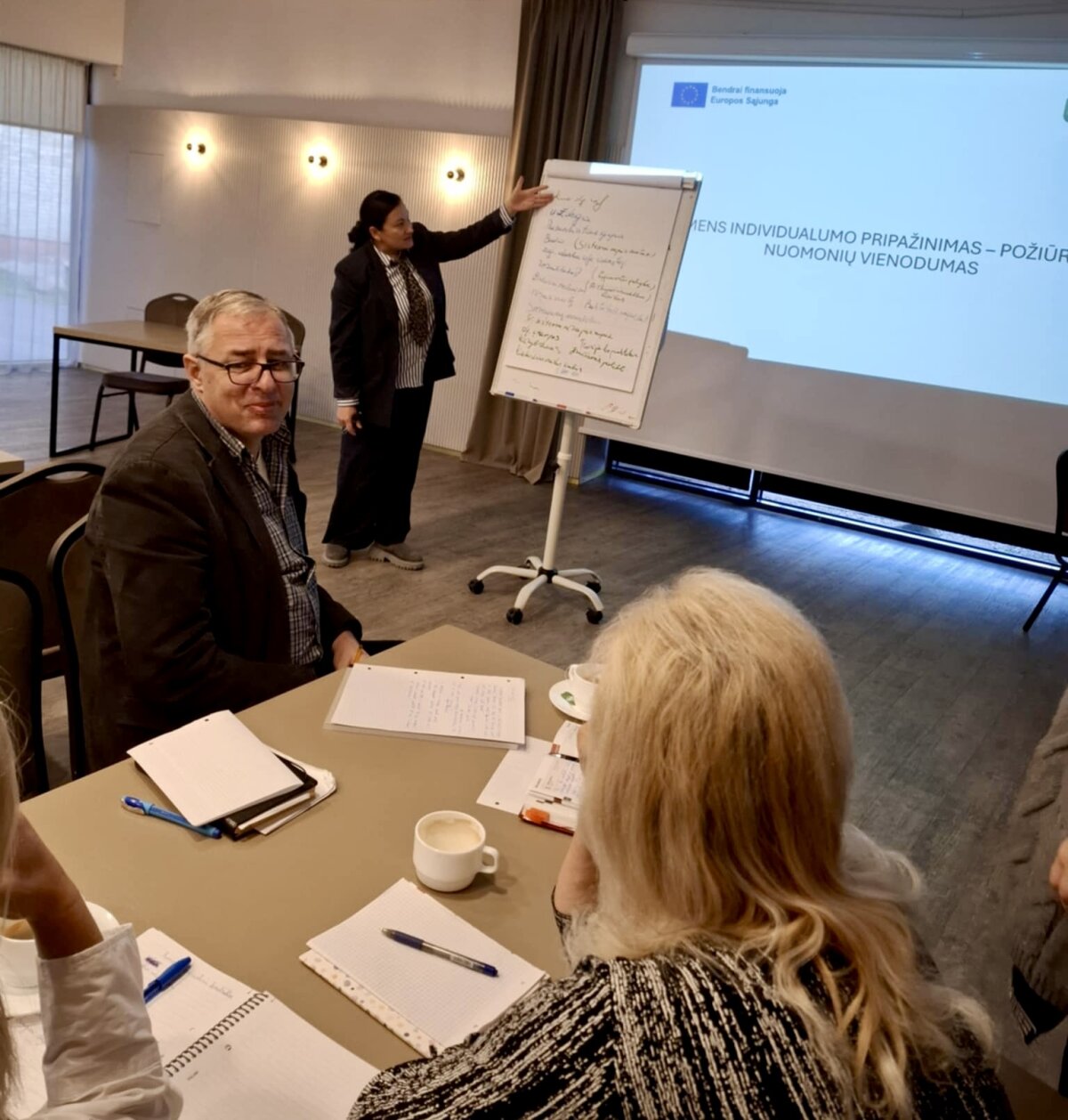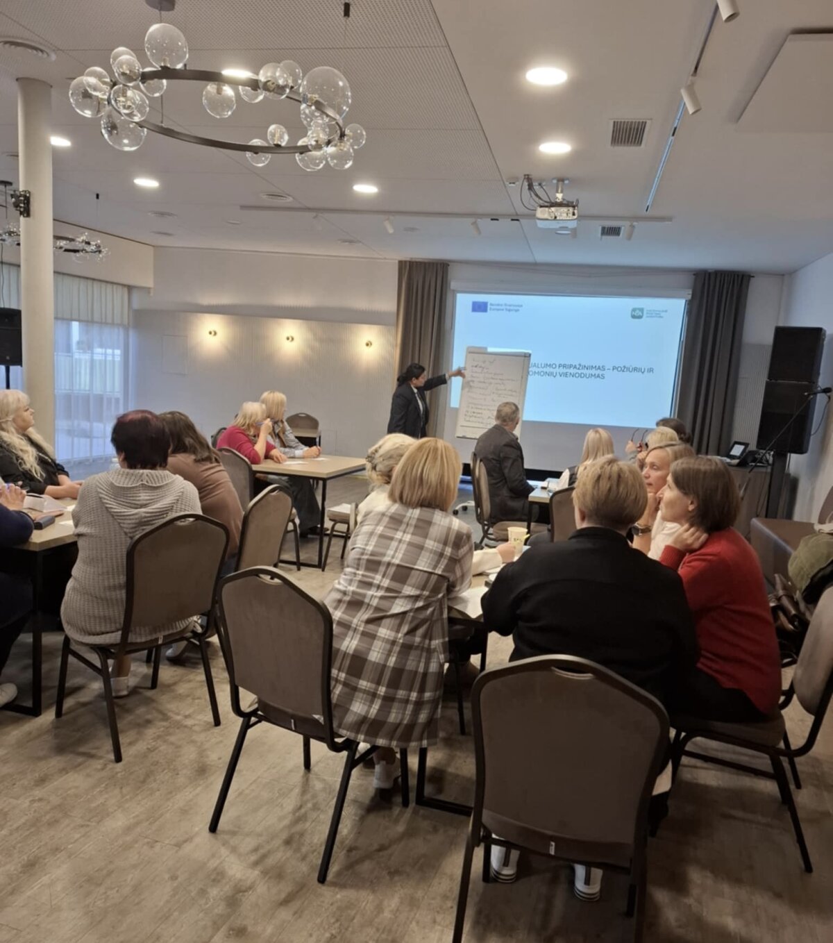 „Įtrauktis: visiems ir kiekvienam“ susitikimus! Du susitikimai vyko nuotoliniu būdu, kurių metu gilinomės į mokinių įvairovės pažinimą ir pripažinimą – nagrinėjome elgesio sutrikimų turinčių mokinių ugdymą. Lektorė pristatė pagrindinius su mokymusi susijusius gebėjimus, kognityvines funkcijas, aptarėme atminties tipus. Šiandien jau susitikome kontaktiniu būdu – kalbėjome apie įtraukiojo ugdymo modelį, klasių komplektavimą, mokinių pasitikėjimo savimi, savivertės bei savigarbos stiprinimą. Dalyvavome praktinėse veiklose, organizavome užduotis elgesio sutrikimų turintiems vaikams bei pristatėme jas kolegoms. Šie susitikimai mūsų bendruomenei suteikė galimybę geriau suprasti įvairių mokinių poreikius, įgauti naujų įrankių palankios mokymosi aplinkos kūrimui, stiprinti mokinių pasitikėjimą, skatinti bendradarbiavimą tarp pedagogų ir dalijimąsi gerąja patirtimi. Tai dar vienas žingsnis link įtraukios ir palaikančios mokyklos aplinkos kūrimo kiekvienam mokiniui mūsų gimnazijoje.