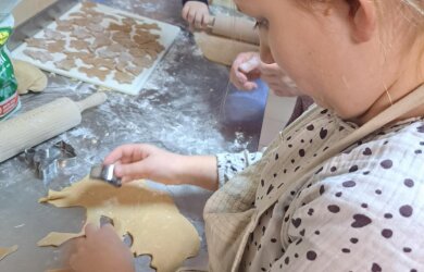 kvapą. Jos kvepia imbieru, medumi, cinamonu… Būrelio ,,Puodeli, virk!“ užsiėmimuose ir technologijų mitybos pamokose maišoma meduolių tešla, kepami meduoliai ir ne tik…