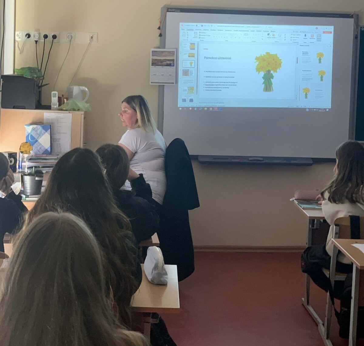 Kovo 26 d. 7 klasėje vyko atvira integruota biologijos ir matematikos pamoka, parengta mokytojų G. Lukošienės ir J. Lembertienės. Septintokai susipažino su narcizo sandara, išsiaiškino jo auginimo sąlygas ir priežiūrą, susiplanavo narcizų pievos sodinimą, apskaičiavo planuojamos sodinti pievos plotą, reikalingą narcizų svogūnėlių kiekį bei šiems darbams reikalingą biudžetą.