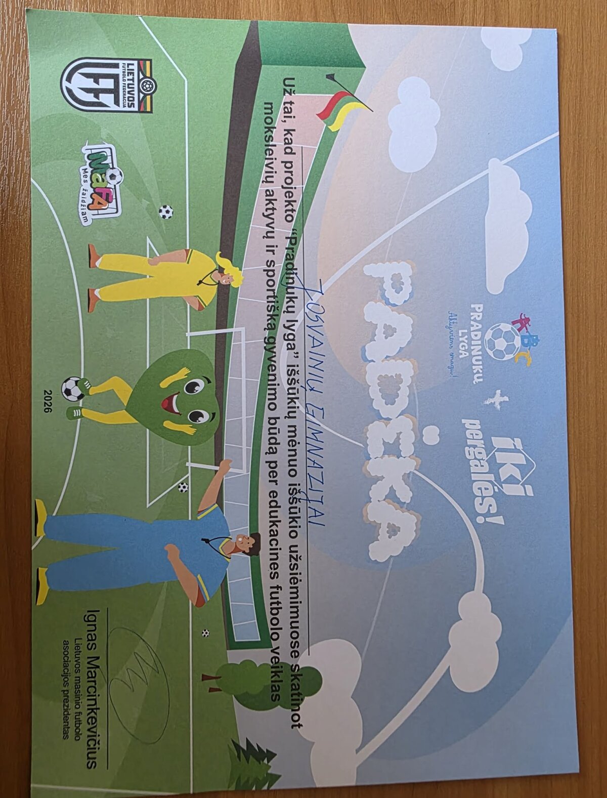 dalyvavo Lietuvos masinio futbolo asociacijos projekte „IKI. Pradinukų lyga – iššūkio mėnuo“ – 2025–2026 m., lapkričio–vasario mėnesiais. Projekto tikslas – skatinti vaikų fizinį aktyvumą, domėjimąsi futbolu bei sveika gyvensena. Užsiėmimų metu mokiniai įveikė įvairius futbolo iššūkius, atliko skirtas užduotis ir rinko taškus. Jie pildė „Iššūkių knygutes“, kuriose žymėjo savo pasiekimus – nuo rytinės mankštos ir sveikų užkandžių pasirinkimo iki futbolo technikos elementų tobulinimo. Dalyvaudami projekte mokiniai išmoko naujų pratimų ir žaidimų, o svarbiausia – su dideliu džiaugsmu žaidė futbolą!
