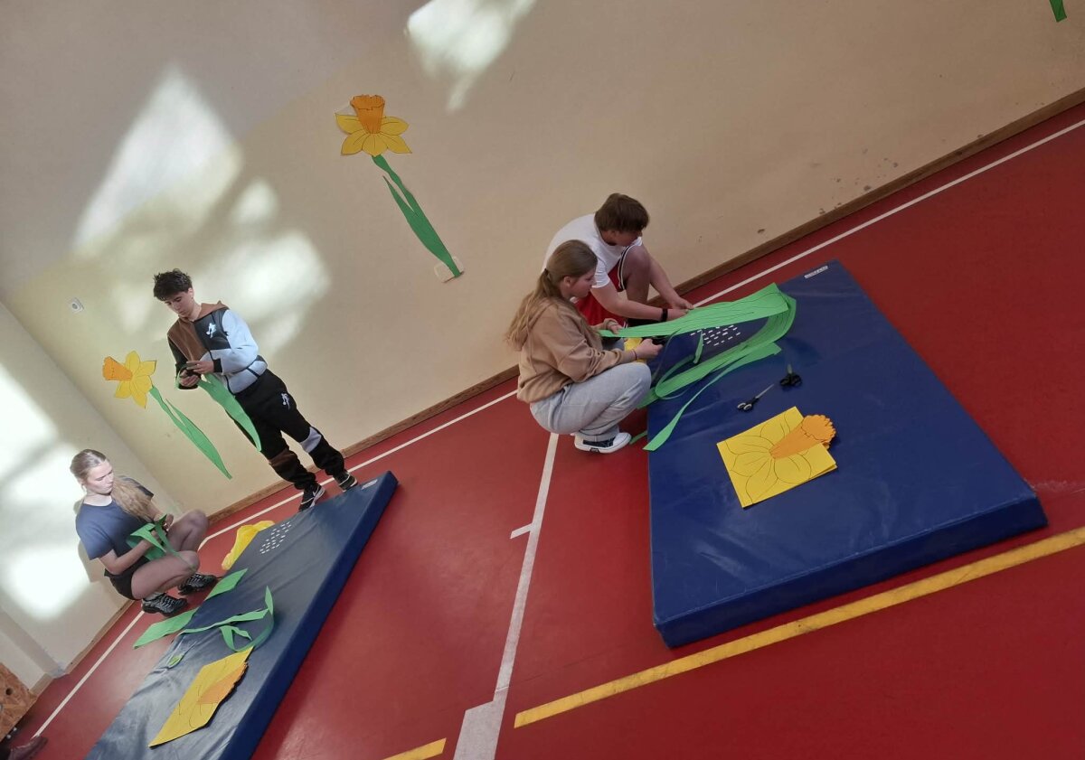 „Judesys – menas“, organizuota įgyvendinant projektą „Geltonas narcizas“ – atminties simbolis ir vaikų dienoraščių istorijos. Pamoką vedė fizinio ugdymo mokytoja ekspertė Gitana Jurgelevičienė ir dailės mokytoja Žydrė Špečkauskienė. Pamokoje dalyvavo 1G klasės mokiniai. Veiklų metu mokiniai atliko sportines ir kūrybines užduotis, bendradarbiaudami kūrė bendrą meninį darbą – narcizų pievą, įprasmindami geltonojo narcizo simbolinę reikšmę kaip atminties ir pagarbos ženklą.
