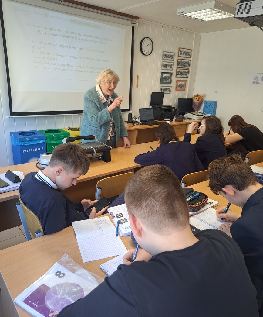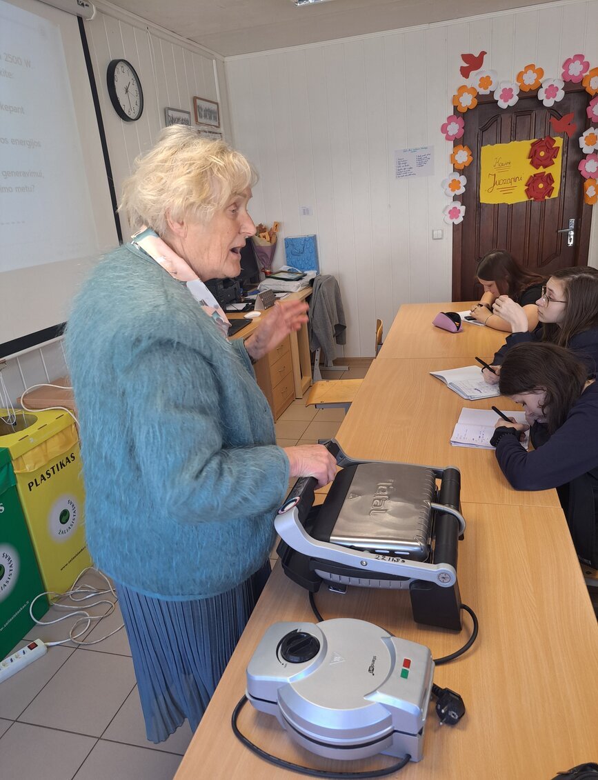 Pamokos ašimi tapo eksperimentas: mokiniai lygino energijos sąnaudas kepdami vaflius pagal skirtingas receptūras ir naudodami nevienodos galios prietaisus. Tai leido realiai pamatyti, kaip skaičiai vadovėliuose virsta konkrečiomis elektros sąnaudomis ir pinigine verte.