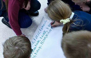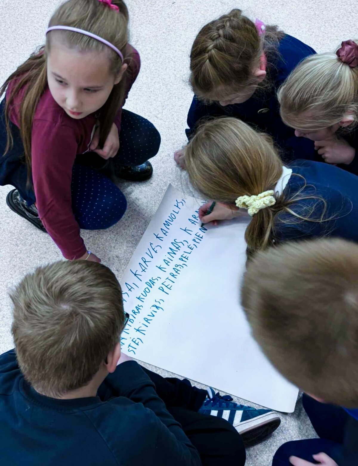 Mokiniai aktyviai dalyvavo įvairiose užduotyse: iš raidžių dėliojo žodžius, kūrė „gyvus“ žodžius, šoko, sudarydami raides, bei kūrybiškai galvojo naujus žodžius iš duotos raidės.