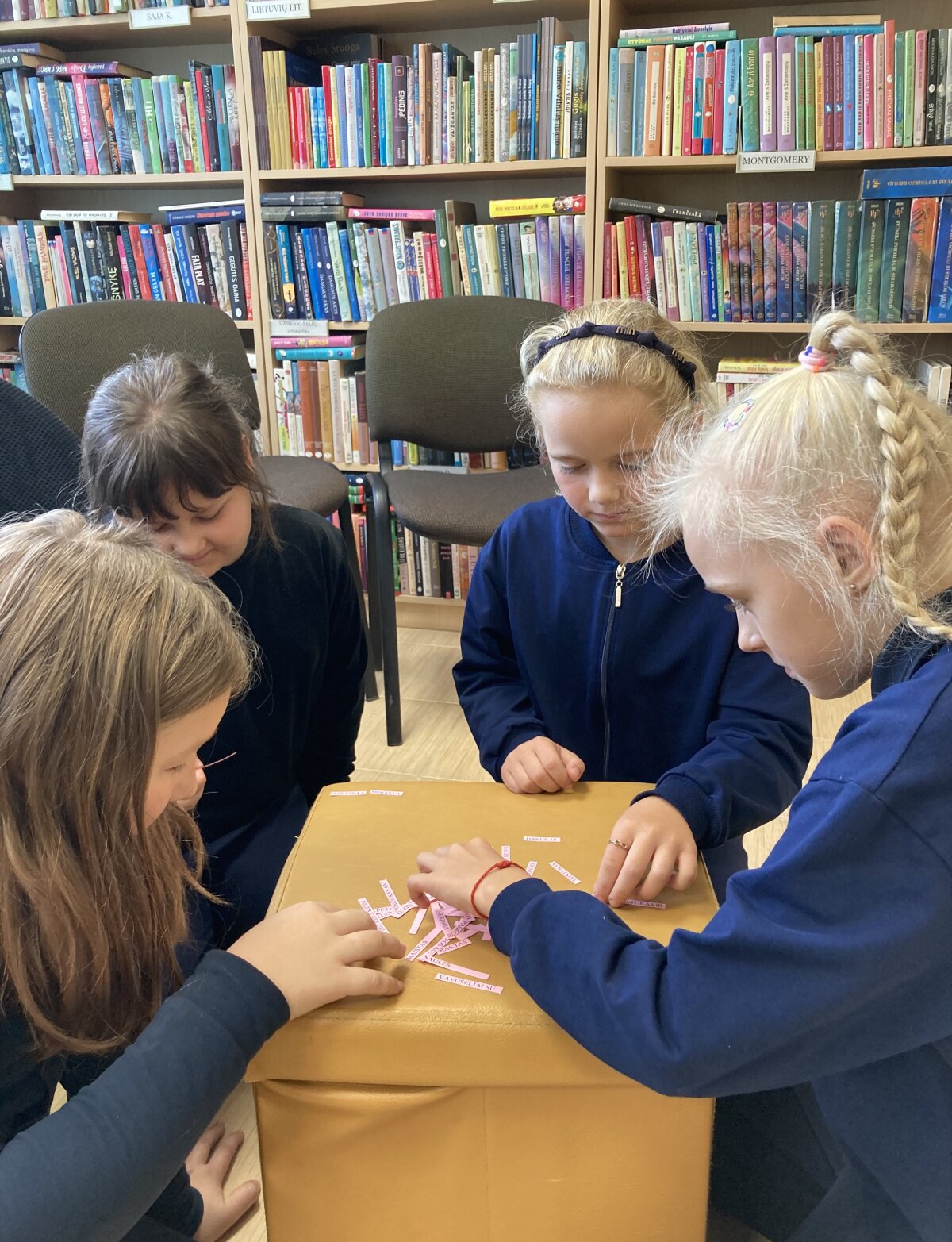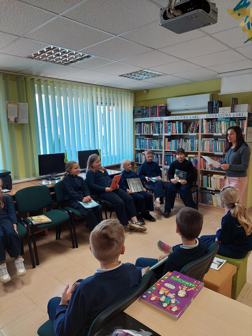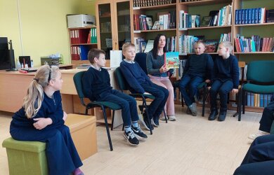 Čia bibliotekininkė mokinius supažindino su knygų kūrėjais – rašytojais, dailininkais, redaktoriais, pristatė J.Wieslander knygą „Gražiausios Mamulės Mū ir Varnos istorijos“. Mokiniai patys knygose ieškojo, kas prisidėjo prie knygos sukūrimo, klausėsi „Knygelės prašymo“, žaidė žaidimą „Rašytojai ir ne tik...“, iš fragmentų dėliojo knygelių pavadinimus.