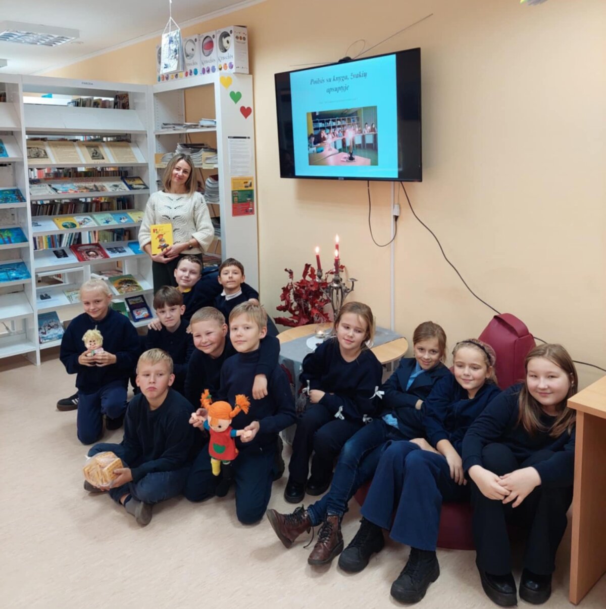 Gimnazijos bibliotekoje lankėsi pirmos klasės mokinukai. -