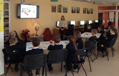 Gimnazijos bibliotekoje lankėsi 3a klasės mokiniai. -