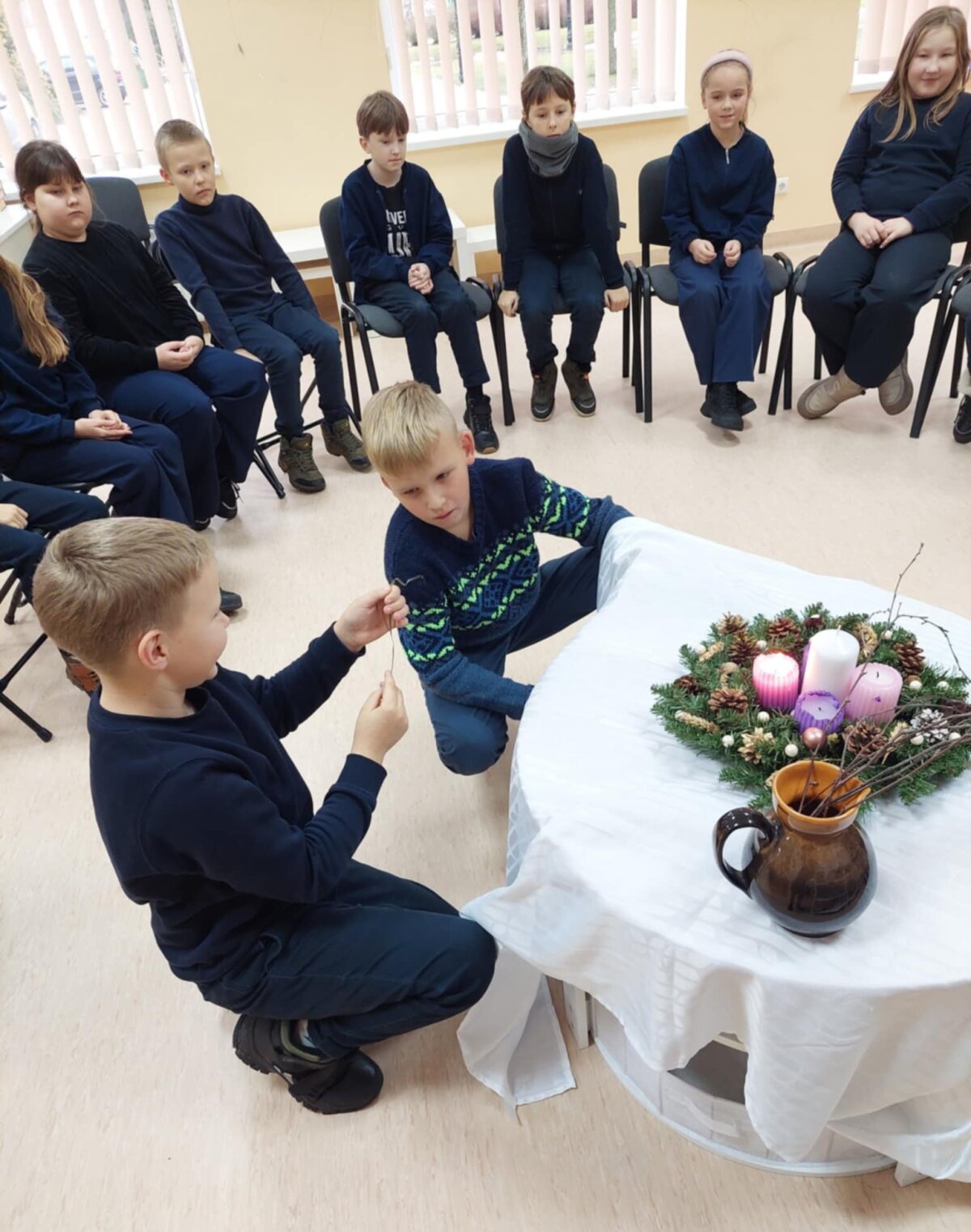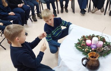 Popietė prasidėjo istorija apie 4 Advento vainiko žvakes, kurios simbolizuoja taiką, tikėjimą, meilę ir viltį. Popietės metu vaikams buvo pasakojama apie Advento tradicijas ir simbolių reikšmę. Mokiniai sužinojo, kodėl Advento vainikas yra apskritimo formos. Jis simbolizuoja amžinumą, taip pat jo reikšmę galima aiškinti kaip saulės metinį ciklą. Vaikai viktorinos metu aktyviai atsakinėjo į klausimus, susijusius su Adventu ir Šv. Kalėdomis, dalinosi savo žiniomis apie šį laikotarpį, pasakojo, kokių tradicijų laikosi savo šeimose. Išbandė Kūčių vakaro burtus. Advento popietę paįvairino smagios užduotėlės, žaidimai, o pabaigoje visi vaišinosi kūčiukais ir saldainiais.