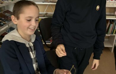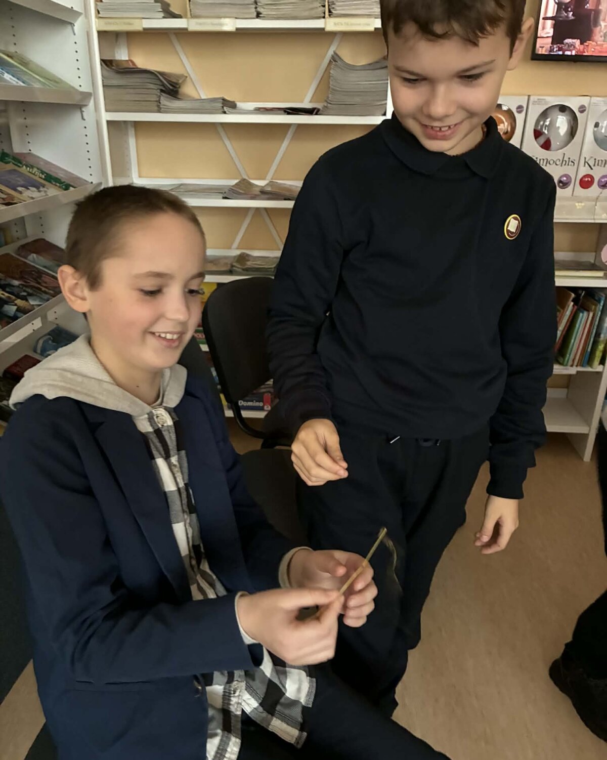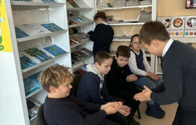 Gimnazijos bibliotekoje lankėsi 3a klasės mokiniai. -