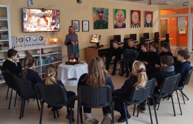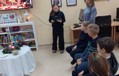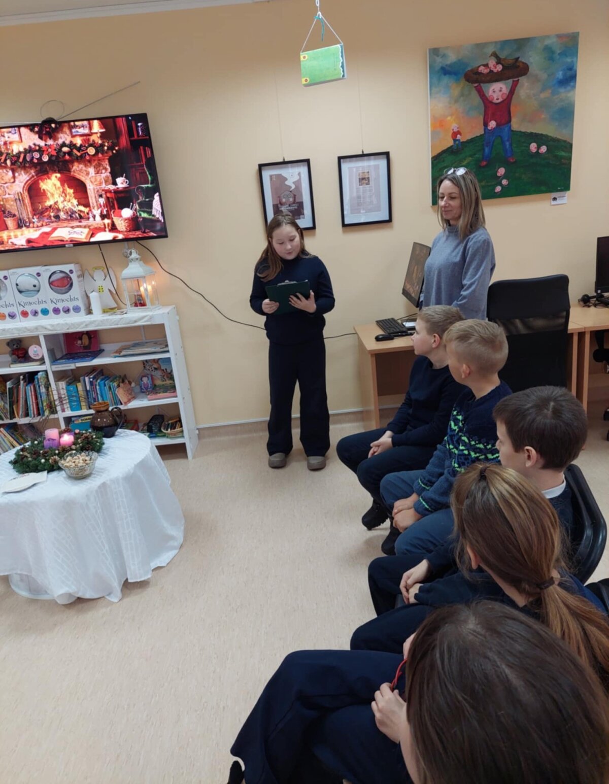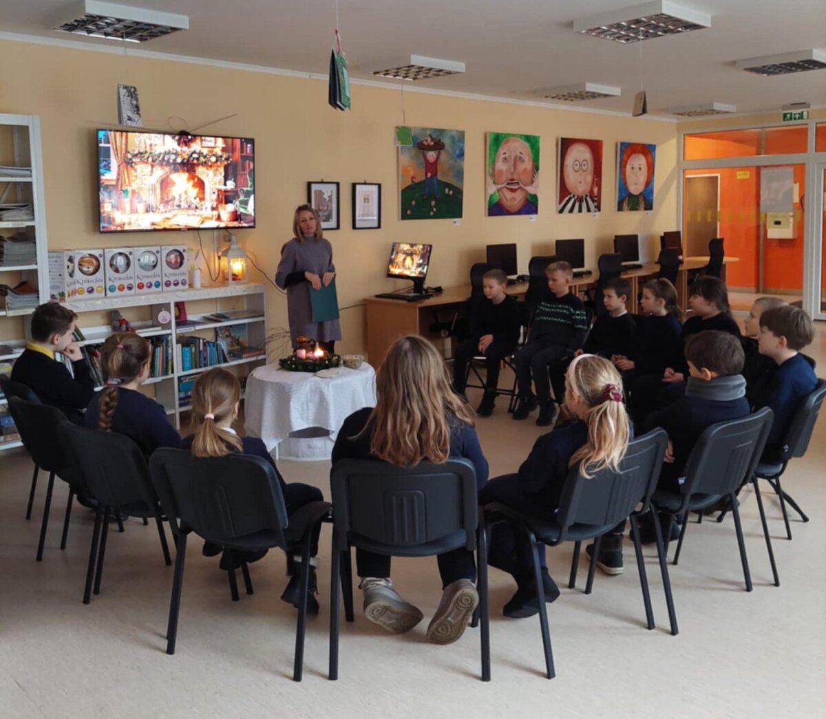 Kėdainių rajono M. Daukšos Josvainių filialo bibliotekoje. Čia vyko popietė „Advento simbolių paslaptys“, į kurią mokinius pakvietė bibliotekininkė Kristina Masiliūnienė.