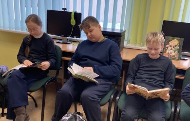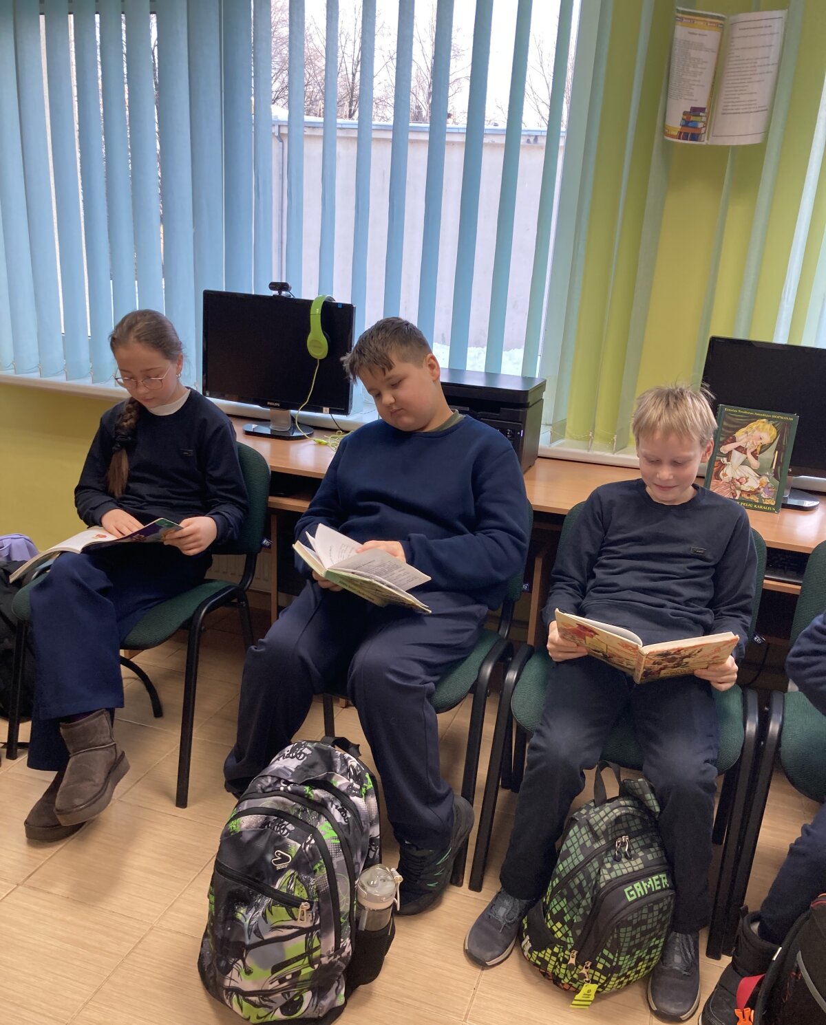 Vasario 10, 11 dienomis gimnazijos bibliotekoje lankėsi 4a ir 4b klasės mokiniai. Bibliotekininkė mokiniams pristatė skaidres apie pasakas, kartu su mokiniais aptarė pasakų struktūrą, herojus, elementus, kalbėjosi apie skaitytas, klausytas, mėgstamiausias pasakas, jų reikšmę, sekė pasaką „Eglė žalčių karalienė“. Ketvirtokai pasiremdami skaidrėse pateikta medžiaga bandė kurti pasakas, ne viskas ėjosi sklandžiai, bet buvo įdomu ir linksma.