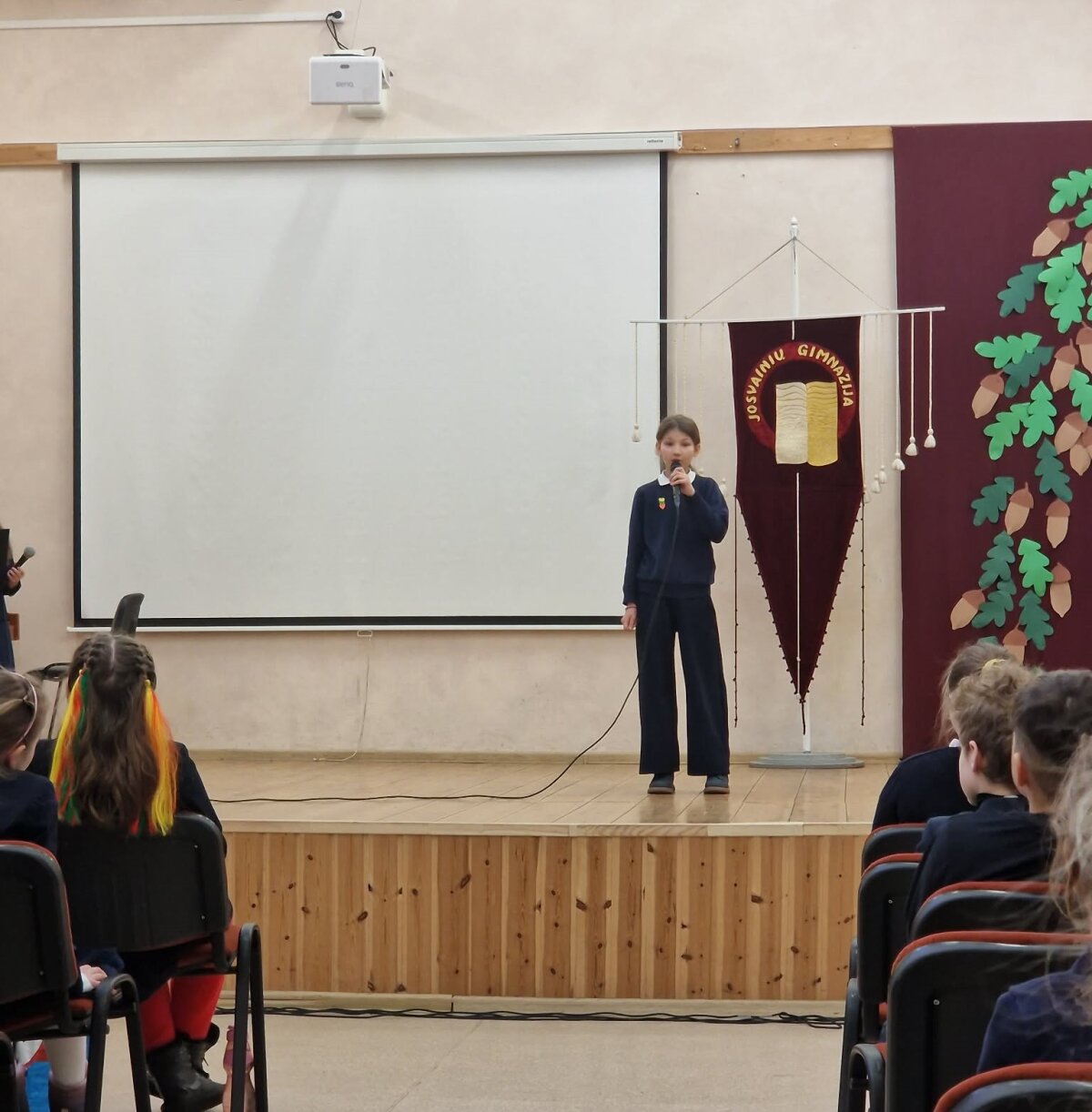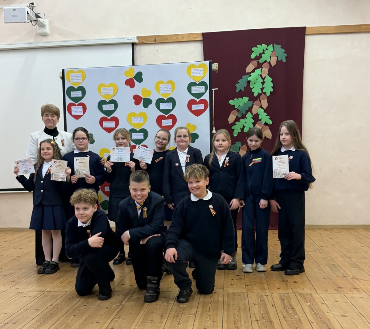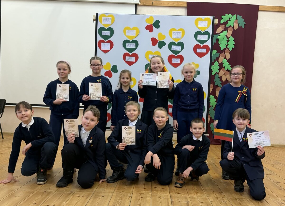 Visą mėnesį pradinukai kartu su savo mokytojomis aktyviai ruošėsi. Vaikai dalyvavo dailyraščio konkurse „Rašau Lietuvai“. Iš kiekvienos klasės buvo išrinkti geriausi darbai. Jie pateko ant geltonų, žalių, raudonų širdelių ir papuošė foto sienelę. Taip pat mokiniai, padedami mokytojų ir tėvelių, išmoko deklamuoti ar skaityti pasirinktus eilėraščius.