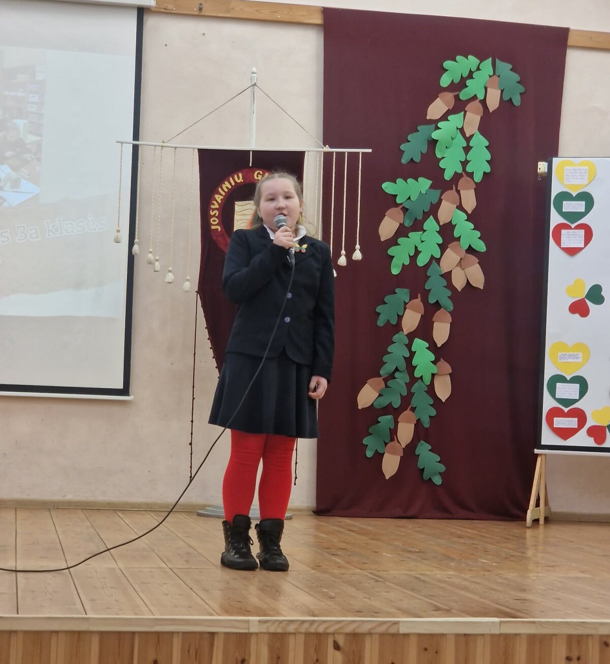 Šventę labai papuošė nuoširdūs vaikų muzikiniai pasirodymai. O 3a klasės mokiniai su savo mokytoja iš antrinių žaliavų pagamino dekoracijas ir sukūrė įdomų filmuką pagal Evelinos Daciūtės eilėraštį „Baisiausias eilėraštis“.
