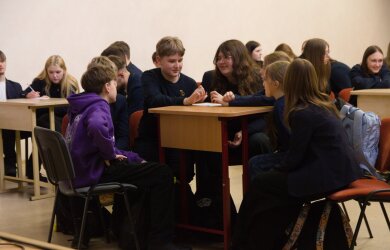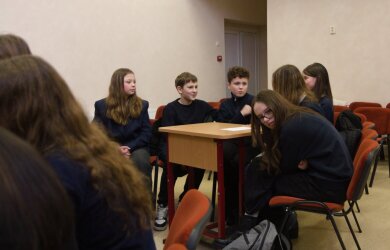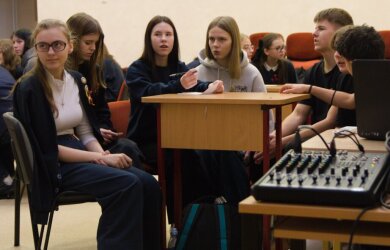 Protų mūšio rengėjai dėkoja mokiniams už nuoširdų dalyvavimą renginyje. Didelį ačiū tariame protų mūšio vedėjoms Orintai ir Jogilei bei vertinimo komisijos nariams Laurynui, Gustinai ir Kristinai.