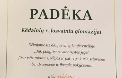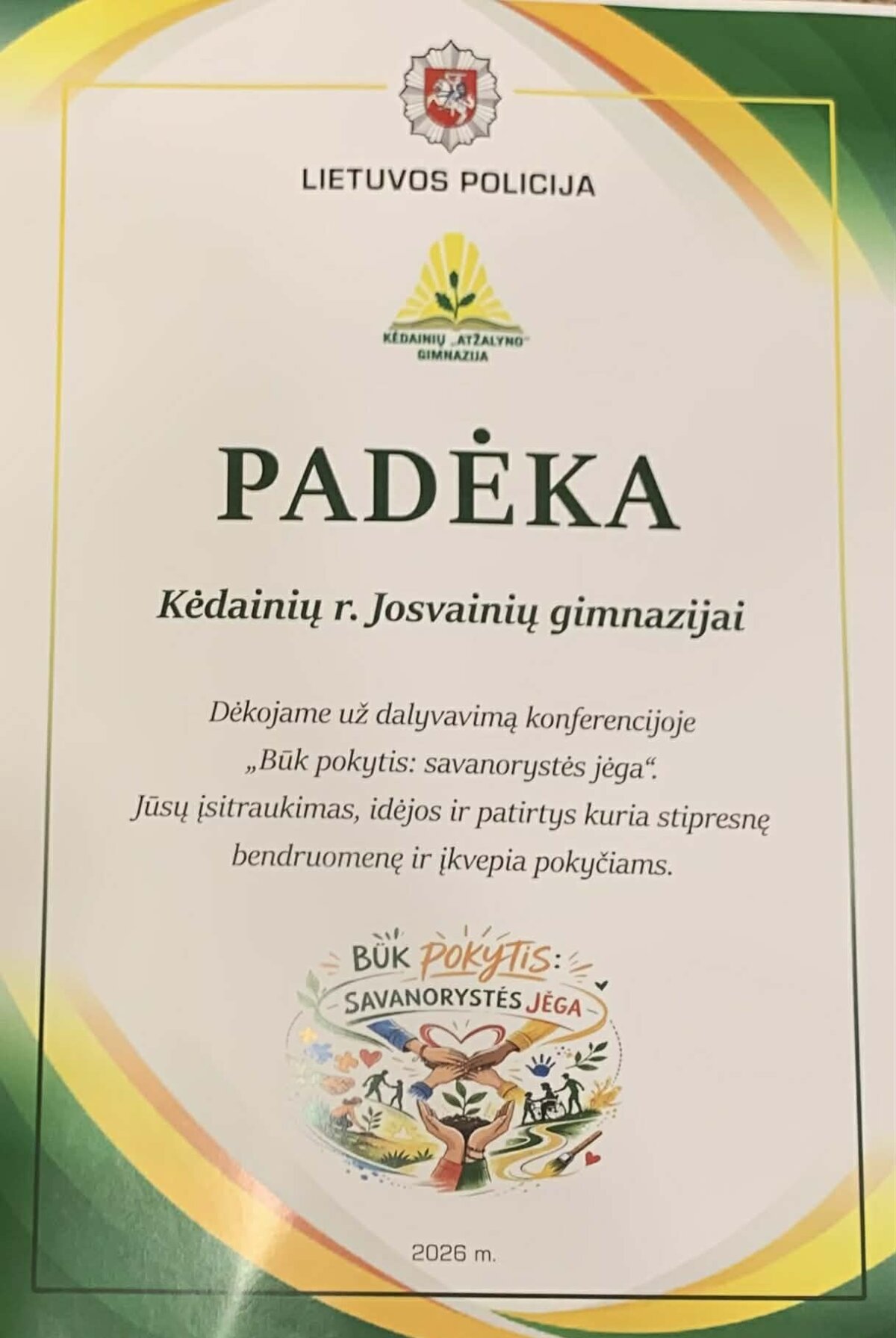 Kėdainių „Atžalyno“ gimnazijos ir Lietuvos policijos organizuotoje konferencijoje „Būk pokytis: savanorystės jėga“.