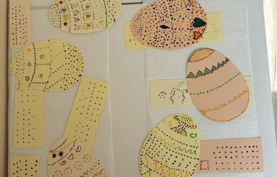 3a ir 3b kasių mokiniai dalyvavo kūrybiniame užsiėmime „Taškuoti margučiai“.