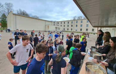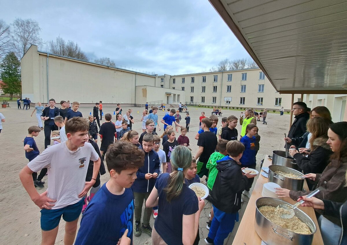Šis prasmingas renginys subūrė 1–3 G klasių mokinius, gimnazijos bendruomenę bendram tikslui – skatinti solidarumą, bendrystę ir socialinę atsakomybę. Po aktyvaus bėgimo visi dalyviai buvo pakviesti pasistiprinti – vaišinosi labai skania, sveikuoliška viso grūdo avižinių dribsnių koše ir gėrė šiltą vaisinę arbatą. Dėkojame viešajai įstaigai „Humana People to People Baltic“ (programa „Valgyk protingai“), kuri skiria lėšas maisto produktams įsigyti ir sudaro galimybes organizuoti prasmingus, bendruomenę telkiančius projektus. Taip pat tariame didelį AČIŪ kavinės „Grūdynės“ savininkei Sonatai Grudienei už vaišes ir geranorišką palaikymą. Tokios iniciatyvos ne tik stiprina fizinę sveikatą, bet ir ugdo atsakomybę bei žmogiškas vertybes.