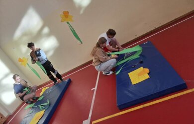 Balandžio 22 d. gimnazijoje vyko integruota fizinio ugdymo ir dailės pamoka „Judesys – menas“, organizuota įgyvendinant projektą „Geltonas narcizas“ – atminties simbolis ir vaikų dienoraščių istorijos. Pamoką vedė fizinio ugdymo mokytoja ekspertė Gitana Jurgelevičienė ir dailės mokytoja Žydrė Špečkauskienė. Pamokoje dalyvavo 1G klasės mokiniai. Veiklų metu mokiniai atliko sportines ir kūrybines užduotis, bendradarbiaudami kūrė bendrą meninį darbą – narcizų pievą, įprasmindami geltonojo narcizo simbolinę reikšmę kaip atminties ir pagarbos ženklą.