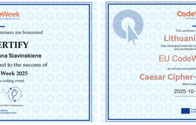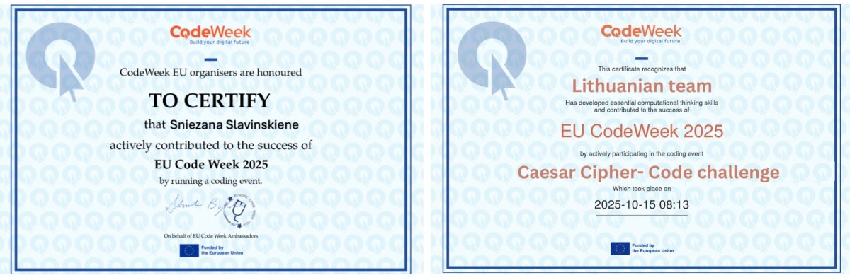 Dalyvavome Code Week veiklose, kurių tikslas – skatinti programavimo ir skaitmeninio raštingumo įgūdžius visoje Europoje (ir už jos ribų) linksmu, prieinamu ir įtraukiančiu būdu.