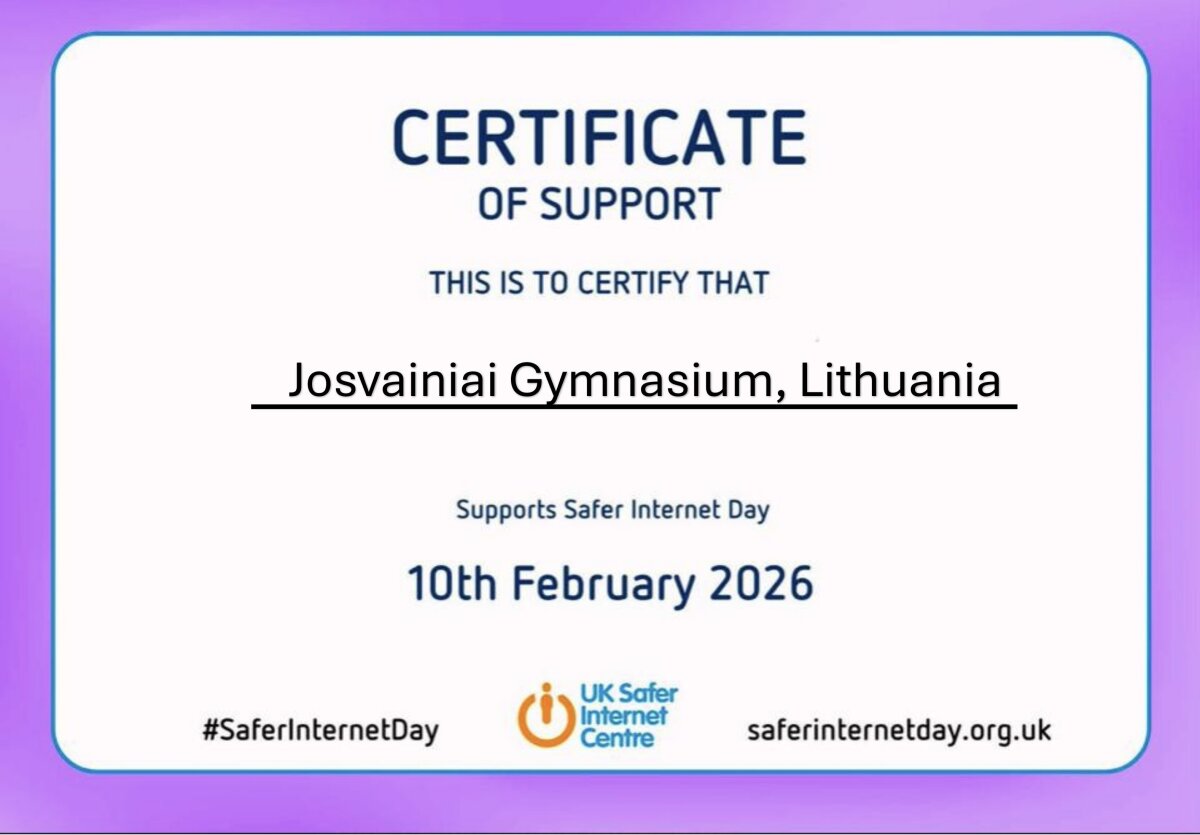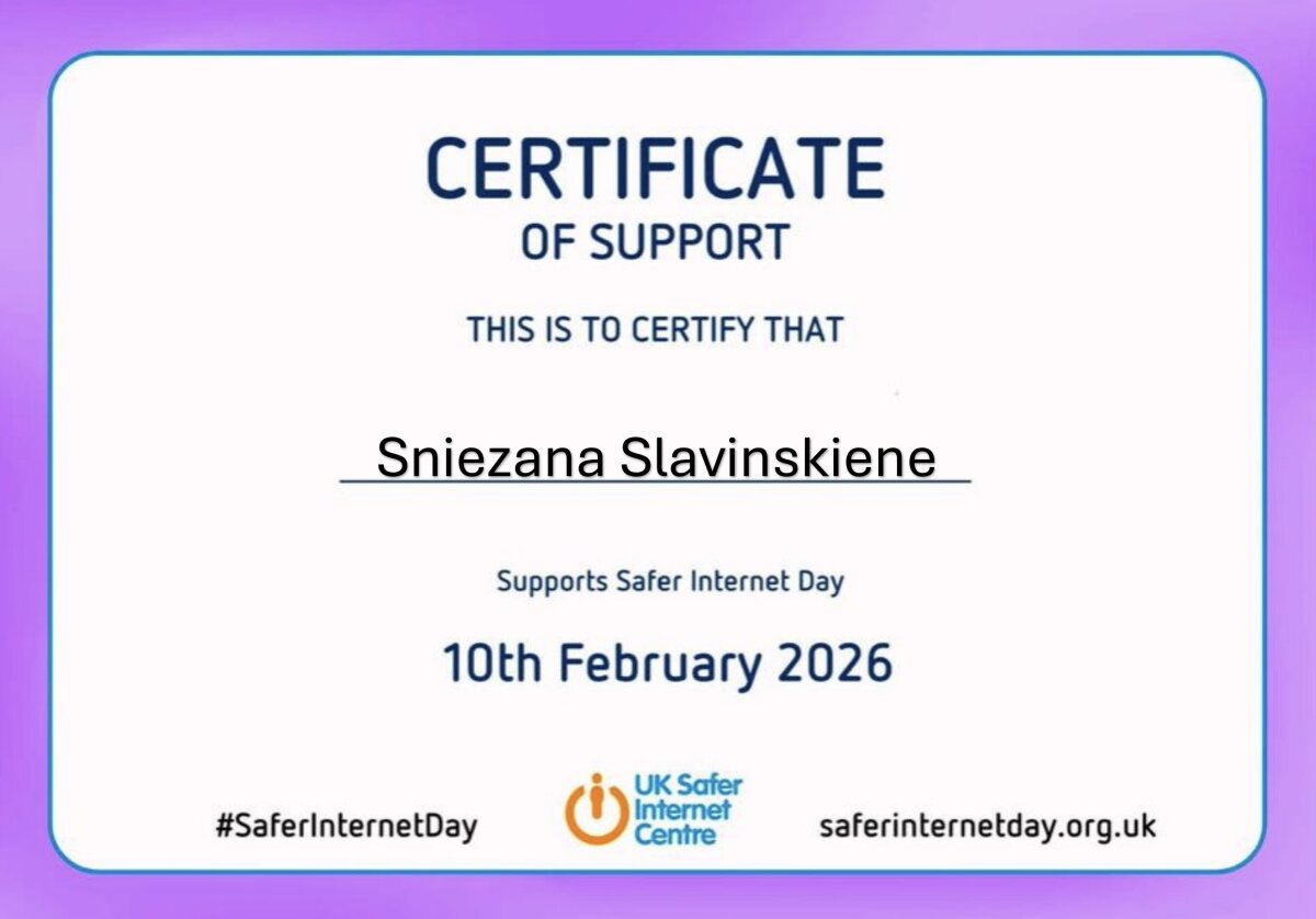 Minėdama Saugesnio interneto dieną 5 klasės mokinių grupė su mokytoja Sniežana diskutavo apie jos svarbą ir mokėsi, kaip atsakingai bei saugiai naudotis internetu. Naudodamiesi išmaniaisiais įrenginiais virtualioje „Mentimeter“ platformoje jie įvardijo, kokiais tikslais dažniausiai naudojasi internetu ir išskyrė pagrindinius pavojus, su kuriais galima susidurti virtualioje erdvėje. Mokiniai taip pat dalyvavo interaktyvioje „Kahoot“ viktorinoje, kurioje pasitikrino savo žinias apie saugų elgesį internete, o veiklų pabaigoje kūrė žodžių debesis apie& pagrindines saugaus interneto naudojimo sąvokas ir idėjas.