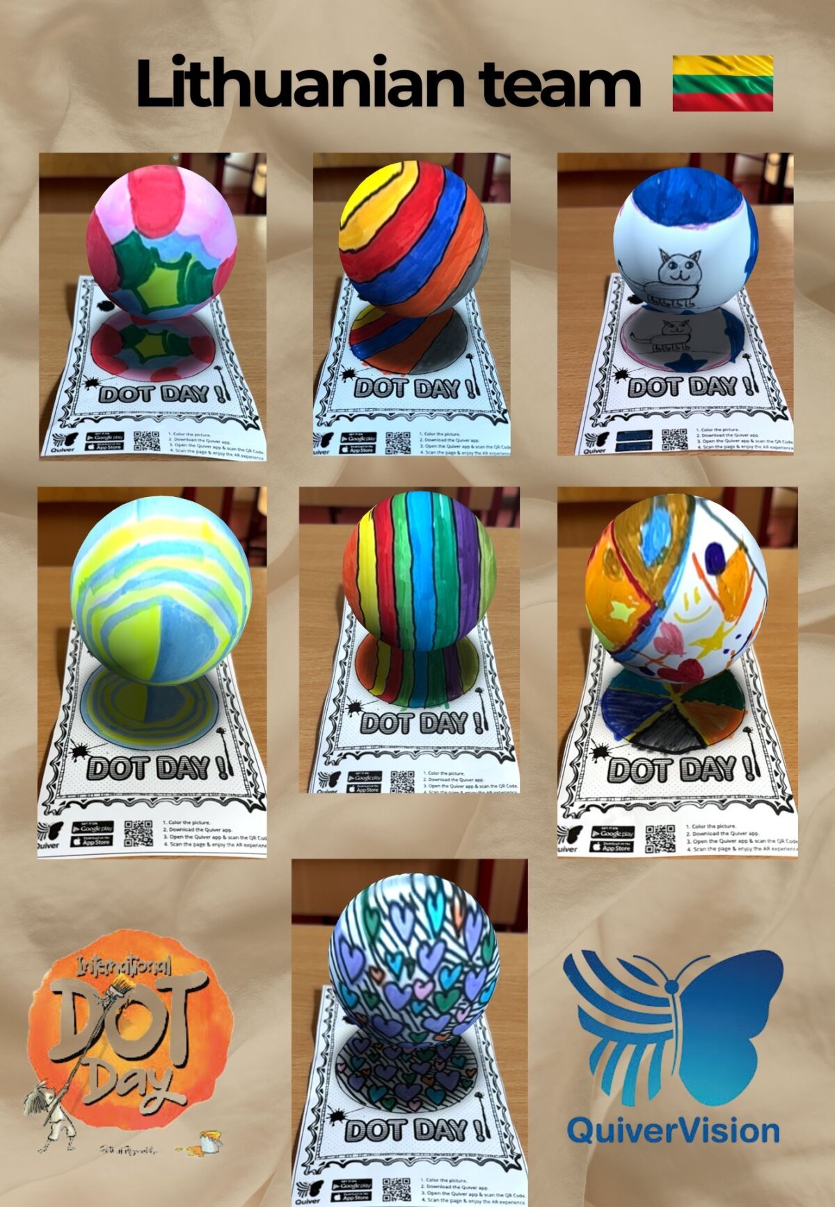 Vėliau mokiniai kūrė savo spalvingus taškus ir, naudodamiesi programa „Quiver“, prikėlė juos gyvybei! Akimirka, kai piešiniai virto 3D animacijomis, suteikė daug džiaugsmo ir įkvėpė toliau kurti.